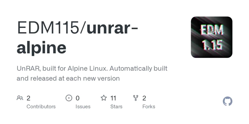 UnRAR, built for Alpine Linux. Automatically built and released at each new version